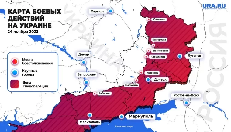 Карта боевых действий в зоне спецоперации на Украине по данным на 13:00 мск от 24.11.2023