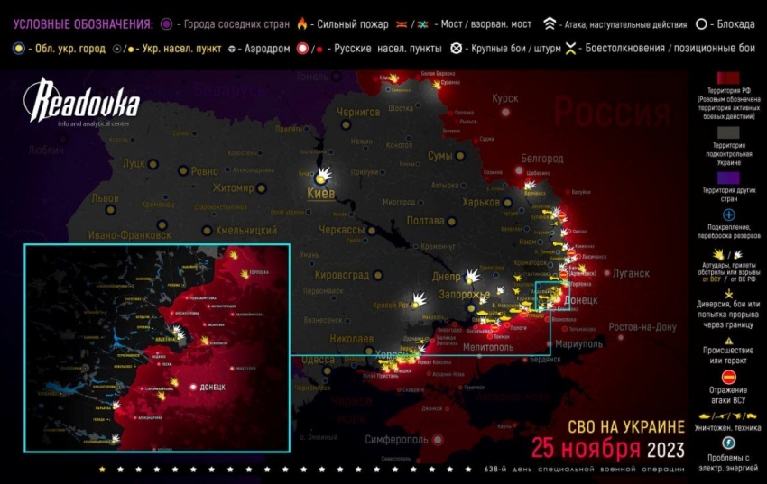 Свежая карта боевых действий на Украине по данным на 06:00 мск от 26 ноября 2023