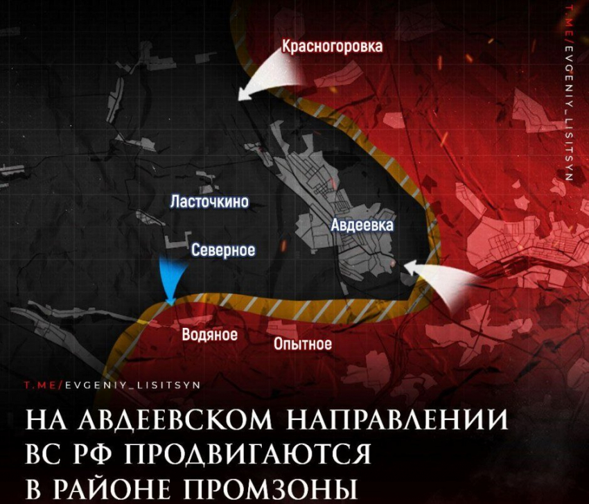 «Большого наступления с «Промки» на Авдеевку сейчас нет, противник готовится к обороне на новых позициях. К северу от города идут бои у Степового и к западу от Красногоровки. Есть некоторые подвижки у коксохима», - написал он в своём Telegram-канале.